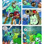 SCINTILLATING TALES #2 — Presenting the newest anthology from George Broderick, Jr., featuring all-new tales of some of his most beloved characters in print for the very first time! Follow the unfathomable adventures of Unbelievable Man and his boy pal, Jigs Jameson as they explore Unbelievable Man’s “secret” headquarters. Thrill to the exploits of Thunder Ape as he contends with a bionic shark! Hold your breath for the underwater adventures of Seahorse Man and his sidekick, Red Snapper! Marvel at the detective skills of The Turducken and the flailing fists of Captain Angry: The Bloody Knuckles Of Justice… and wrack your brains over the befuddled antics of the time traveling Senor Moment! Discover why cartoonist George Broderick, Jr. continues to be “One of the most beloved characters in American folklore”!